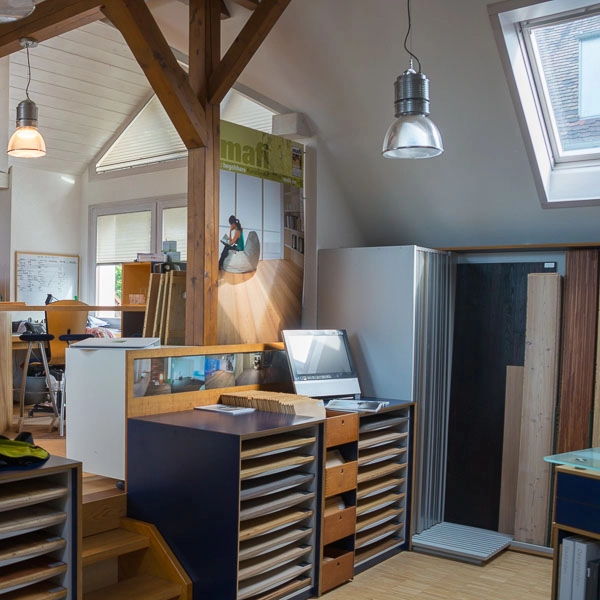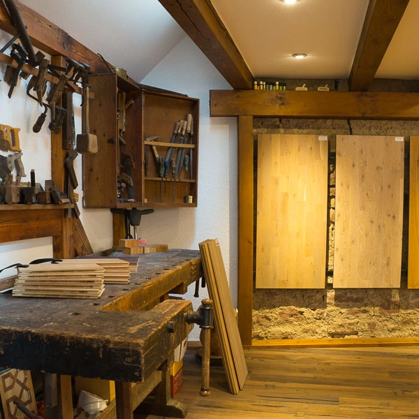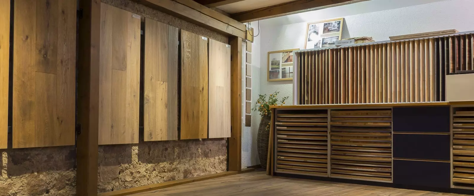 Sie können in unserem geschmackvollen Ausstellungsraum unzählige Holzarten, Oberflächentechniken und Formate bestaunen. Sie stellen hier Ihren Traumboden nach Ihren ganz individuellen Vorstellungen zusammen.